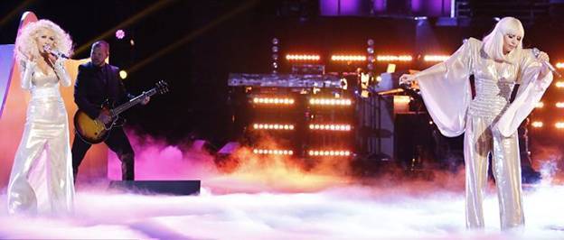 Две звезды встретились в финале шоу и спели дуэтом. После выступления они обменялись через сеть хвалебными одами друг о друге. Леди Гага написала: "Я действительно взволнована. Мне предложили выступить в финале Голоса с Кристиной Агилерой. Я сразу же согласилась. Она замечательная певица". В свою очередь Кристина написала: "Она вокалист электростанция. Куча энергии. Мне выпала честь спеть с #ЛедиГагой сегодня на Голосе".