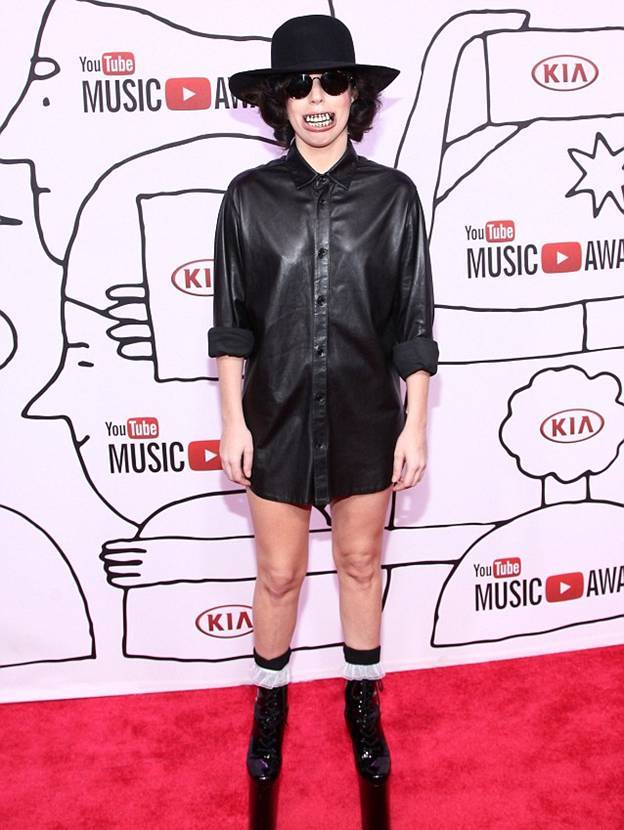 Леди Гага показала на церемонии свой новый оскал, который однако не остановил ее парня от поцелуя