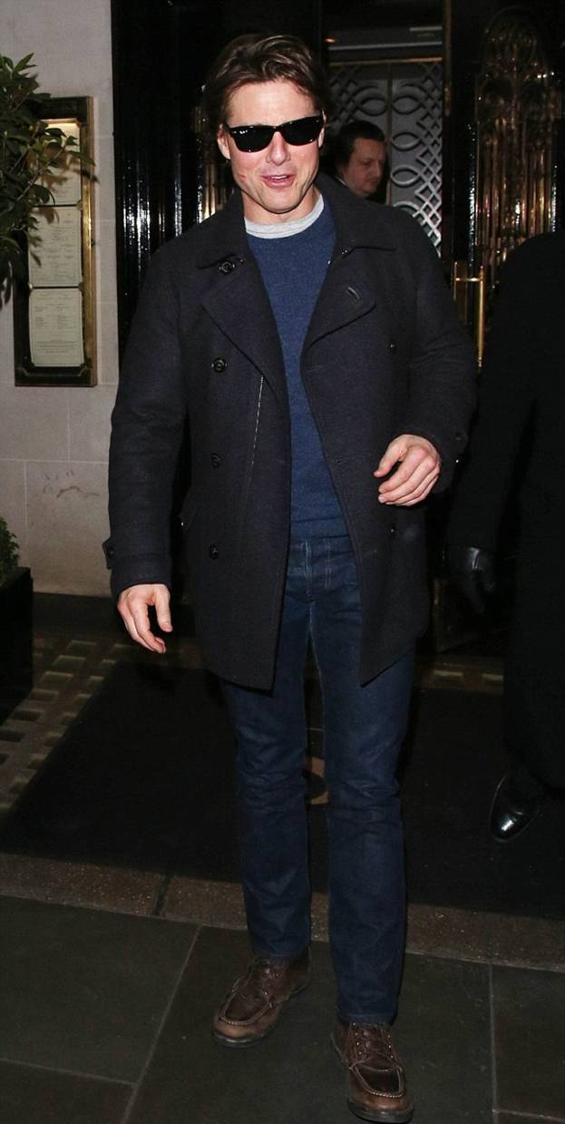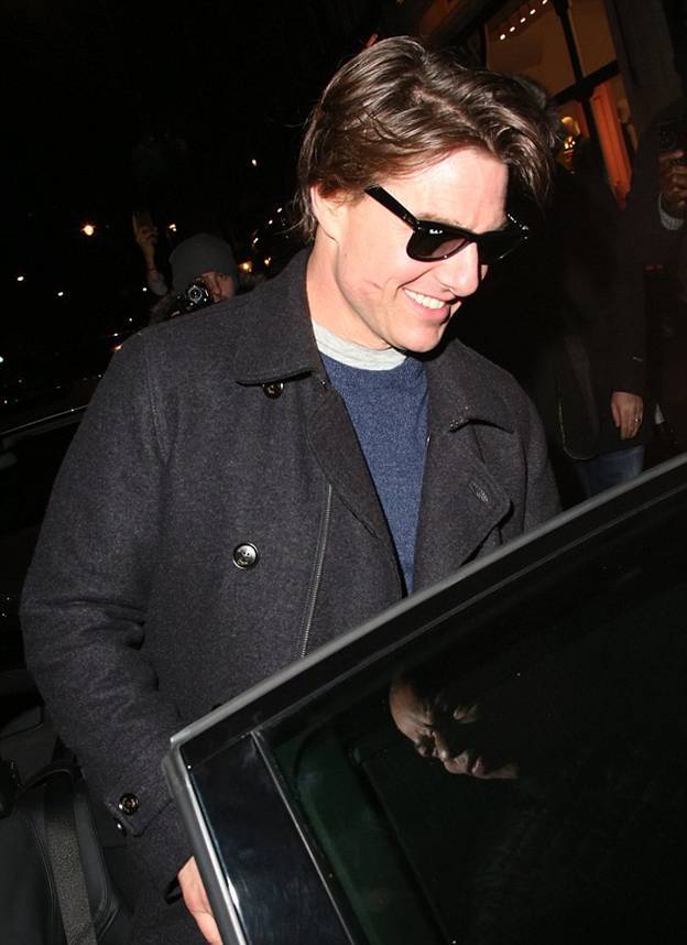 Ужин удался, и трио выглядело счастливым, когда покидало ресторан. Судя по губным отметинам на щеке Тома, при окончании ужина он получил дружеские поцелуи в щечку от актрис.