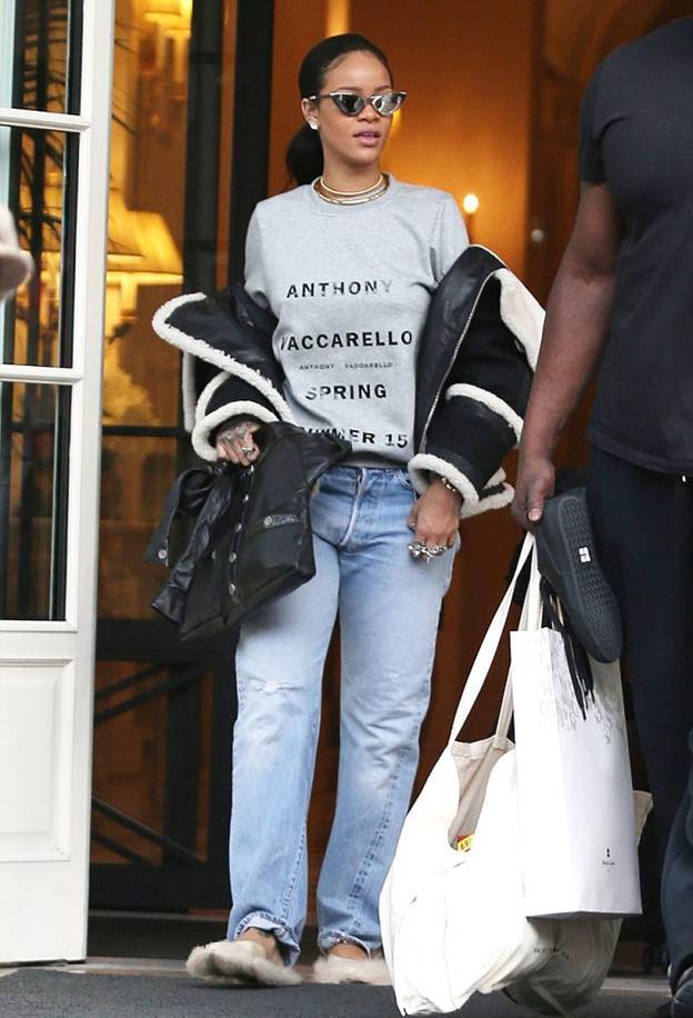 Похоже, что Рианна немного устала от обуви на каблуках. Поп-звезда была замечена обутая в своеобразные тапочки.
