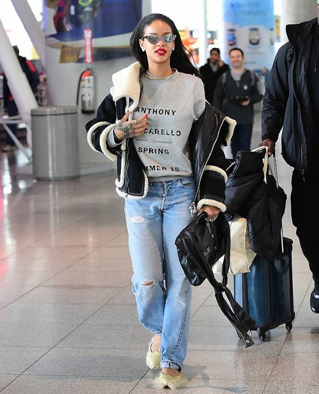 Устала от каблуков? Рианна совершила трансатлантический перелет в тапочках
