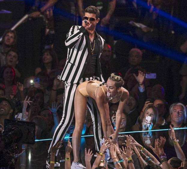 Майли и Робин на прошлогоднем выступлении MTV Video Music Awards