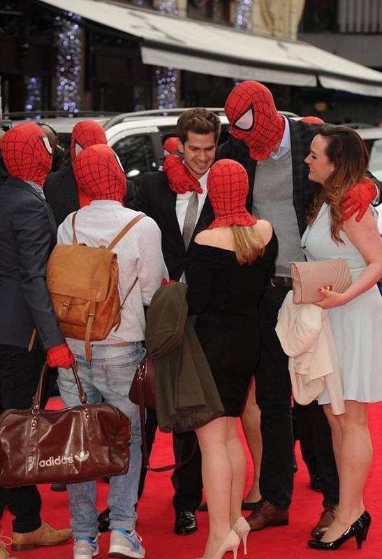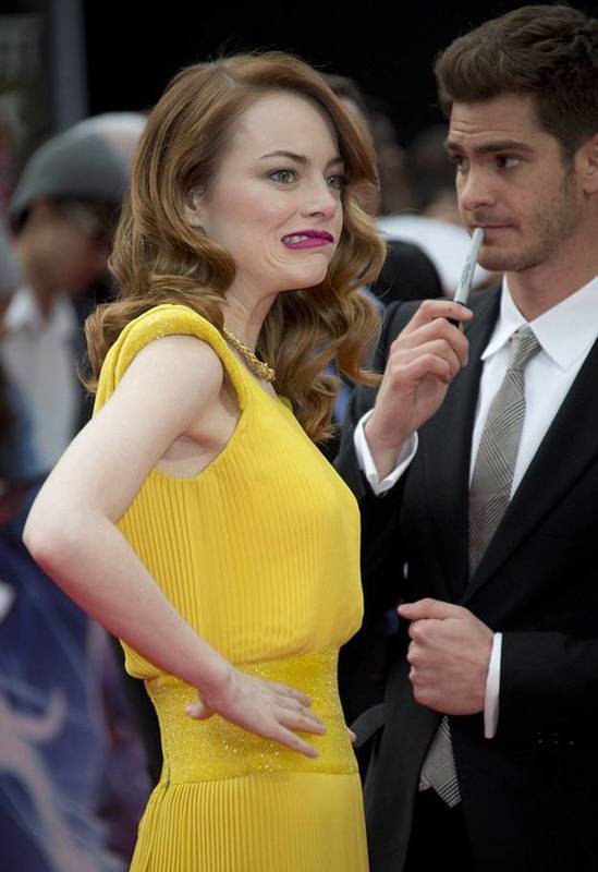 Актеры, чей роман начался на съемках первого фильма Новый Человек-Паук, были в прекрасном настроении, всячески дурачась на красной ковровой дорожке.