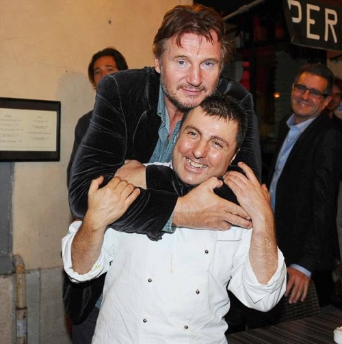 После ужина, знаменитые гости поблагодарили шеф-повара ресторана, в частности, 60-летний Лиам с удовольствием сфотографировался с сотрудниками ресторана.