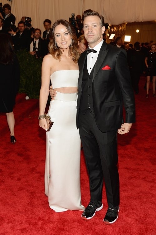 Оливия Уайлд появилась на красной ковровой дорожек в платье из коллекции Calvin Klein. Сопровождал ее жених Джейсон Судейкис;