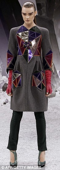 Коллекция была кррестально-тематическая. Ее вдохновитель Карл Лагерфельд создал как бы другую планету, очень похожую на родную Супермена — Криптон.