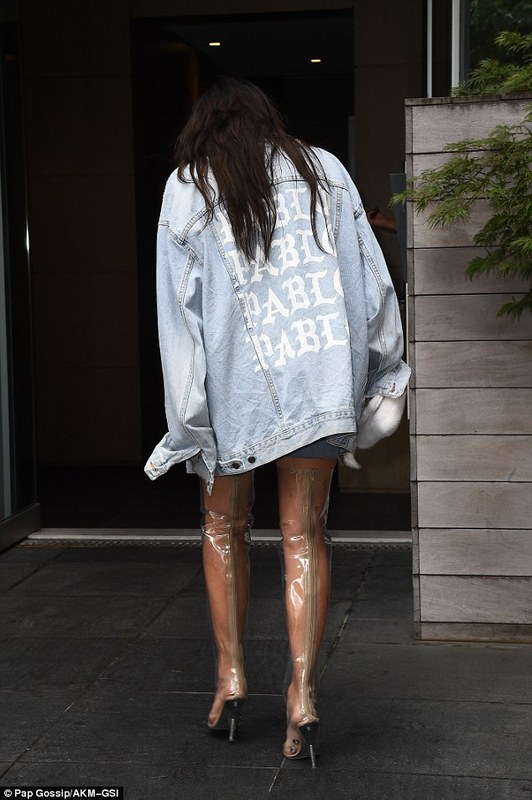 Ким Кардашьян продолжает модные эксперименты. Во вторник 35-летняя светская львица вышла в свет в силиконовых ботфортах, джинсовых шортах, джинсовой куртке, которую надела нараспах, продемонстрировав пышный бюст в прозрачном бюстгальтере.