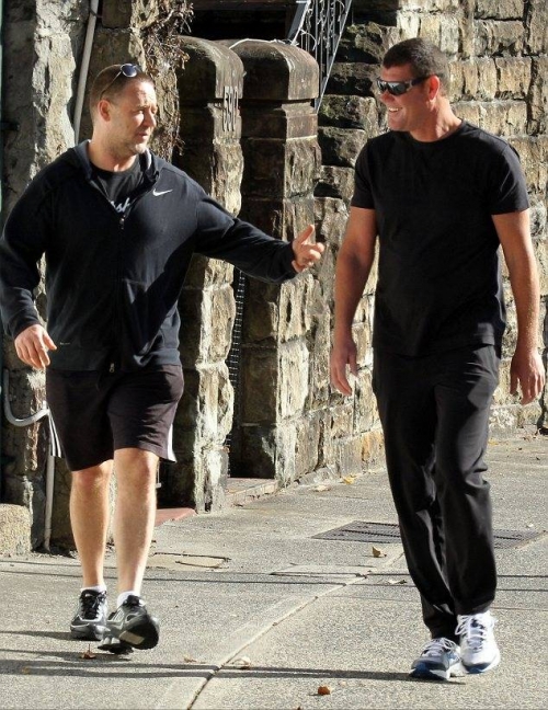В среду на сиднейских улицах были замечены одни из самых известных людей Австралии: знаменитый актер Рассел Кроу и самый богатый человек страны, миллиардер Джеймс Паркер.