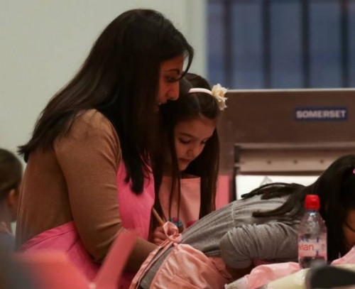 Кэти и Сури в одинаковых пальто пришли на мастер-класс
