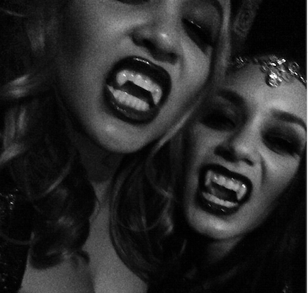«Это я и Стелла (младшая сестра актрисы) одетые как вампиресы для Хэллоуина».