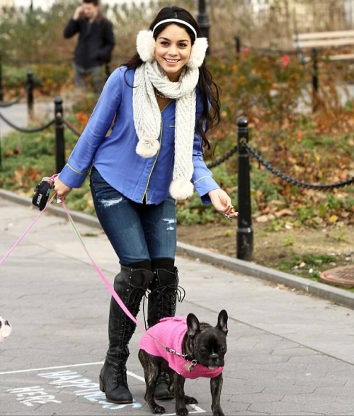 Ванесса Хадженс была замечена на прогулке по Центральному парку Нью-Йорка. 24-летняя актриса гуляла вместе со своей подругой и ее французскими бульдогами, которые видимо очень ей нравятся.