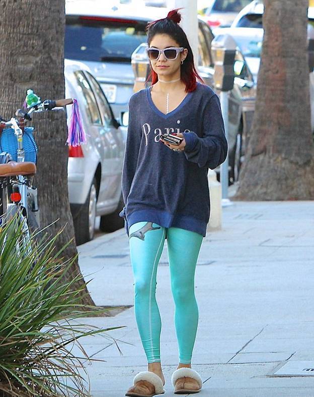 Ванесса Хадженс решила во вторник не сильно заморачиваться с обувью и надела на прогулку по городу обычные домашние тапочки.
