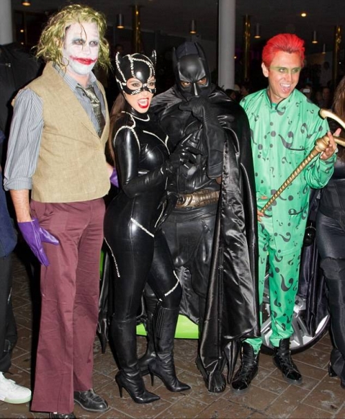 Ким Кардашян и Канье Уэст отмечали праздник в Майами. Ким была в костюме женщины-кошки, а ее бойфренд Канье в образе Бэтмана. Надо заметить, что на этой недели Ким так же уже продемонстрировала костюм русалки.