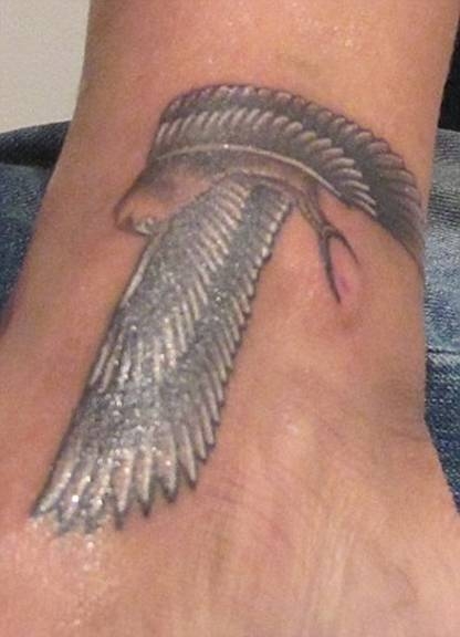 Говорят, что татуировка это катарсис (очищение, оздоровление). Рианна добавила к своей коллекции татуировок, новую-египетского сокола в форме пистолета чуть выше ее правой лодыжке. Это уже семнадцатая по счету тату, вторая в форме пистолета.