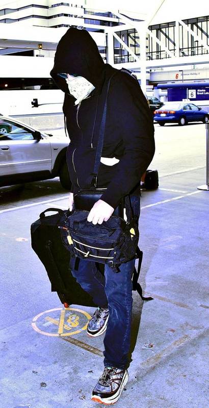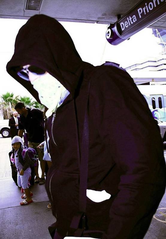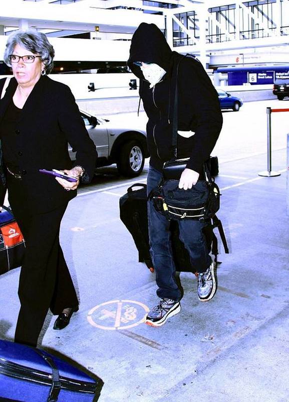 А во вторник 55-летняя звезда вообще был замечен с платком в области лица и шеи. Он прилетел рейсом Нью-Йорк - Лос-Анджелес и был замечен в аэропорту города.