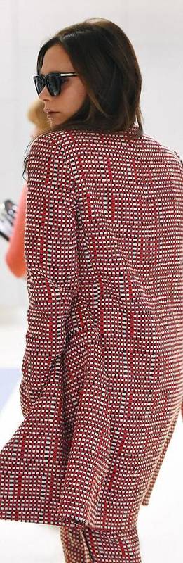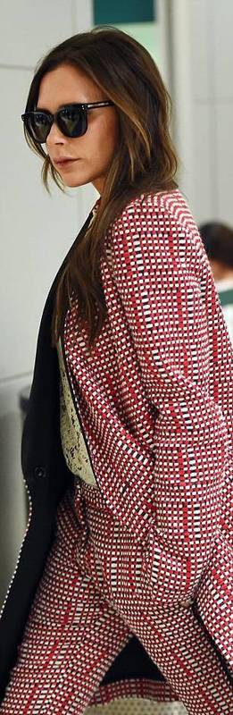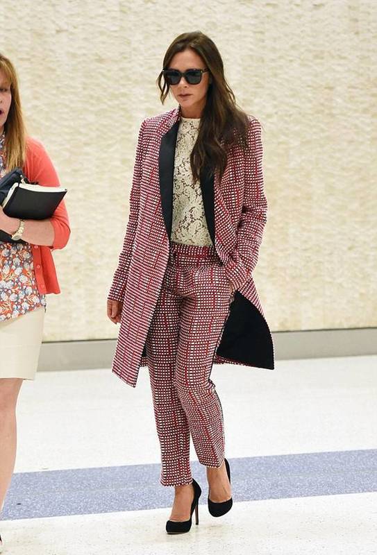 Виктория Бекхэм прилетела в Нью-Йорк в ярком костюме собственного бренда