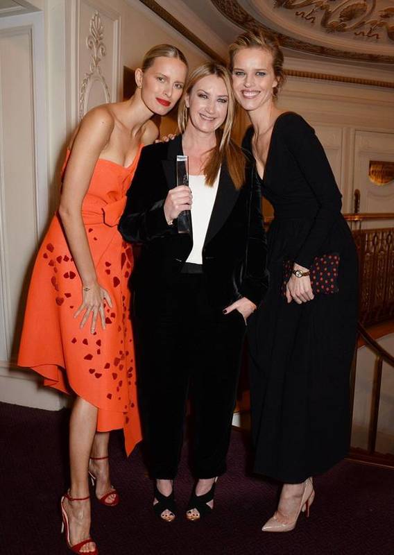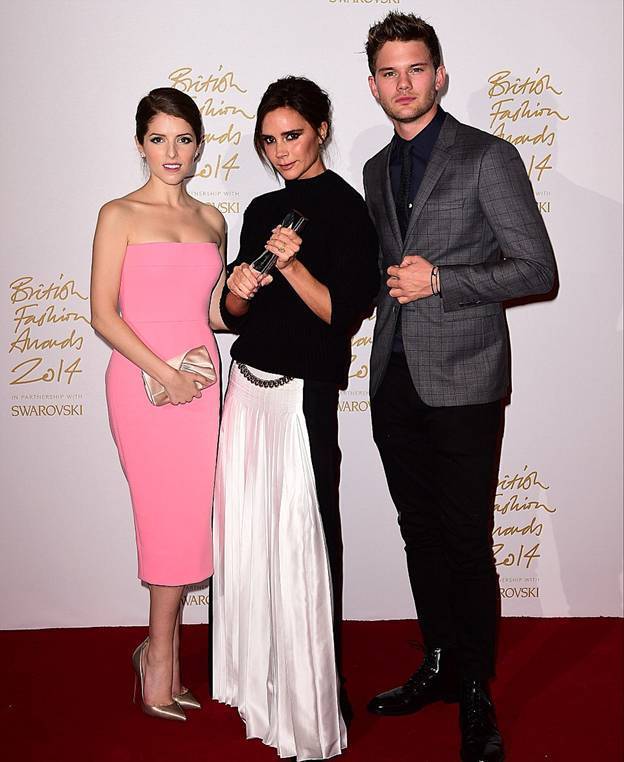 Анна Кендрик и Джереми Ирвин с победительницей Best Brand at the 2014 British Fashion Викторией Бекхэм