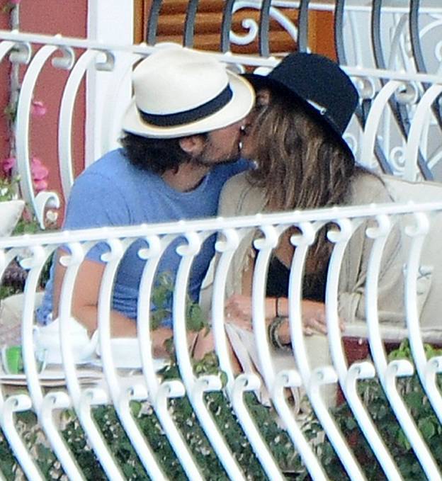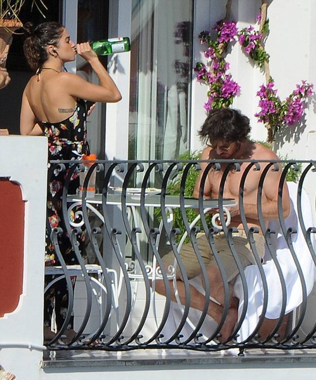 Пара была сфотографирована на балконе своего роскошного отеля, а после с друзьями в ресторане.