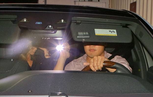 Водитель Дженнифер старается ослепить фотографов фонариком, но это мало помогает, он лишь царапает машину, ведя ее одной рукой