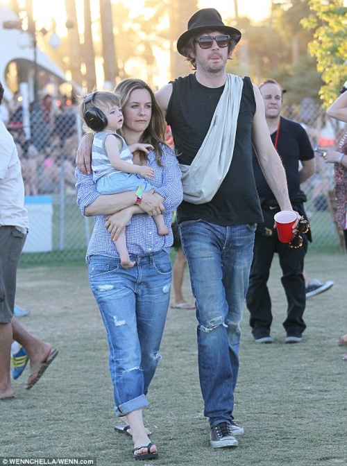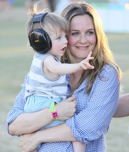 Алисия Сильверстоун со своим мужем Кристофером Джареки и 11-месячным сыном, которому надели наушники, видимо для того, чтобы он не оглох от громкой музыки.