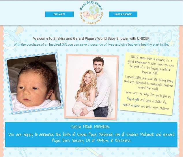 При размещения снимка сына, певица написала: "Мы хотели бы познакомить вас с Сашей Пике Мубарек - если хотите сделать это зайдите в worldbabyshower.org". Напомним, что таким способом поп-звезда и известный футболист собирают деньги для нуждающихся детей.
