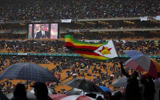 В Йоханнесбург на стадион вместимостью 95 000 человек, где прошло отпевание Нельсона Манделы, Шерлиз Терон прибыла одна из первых.