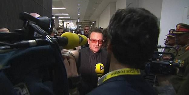 Шарлиз Терон и Боно на отпевании Нельсона Манделы