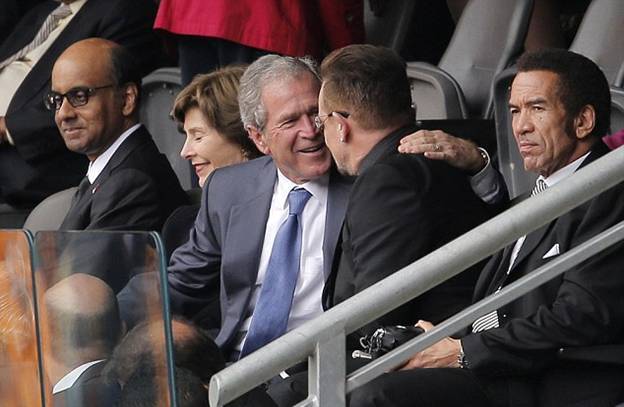 Также на отпевании был замечен певец Боно из U2. Он прибыл в Африку со своей женой Али Хьюсон. Боно, чье настоящее имя Пол Хьюсон, тесно сотрудничал с Манделой в сфере благотворительности. В частности, повышения информированности населения Африки о СПИДе.