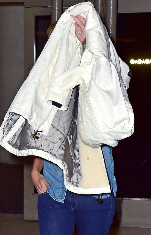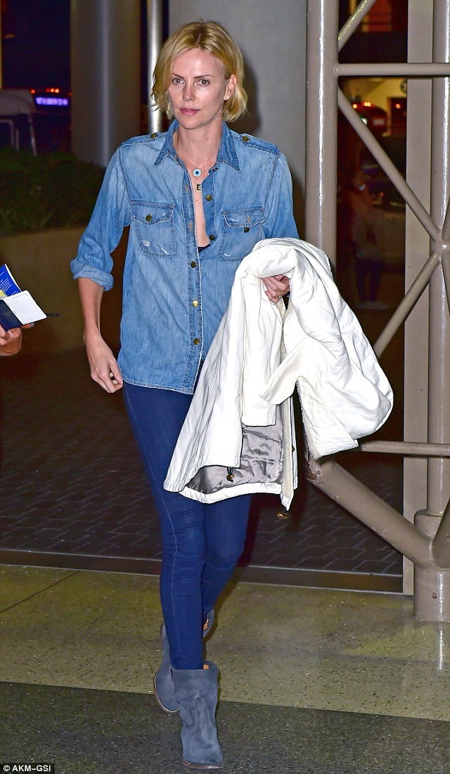 Закрываясь курткой от папарацци, Шарлиз продемонстрировала свое новое кольцо