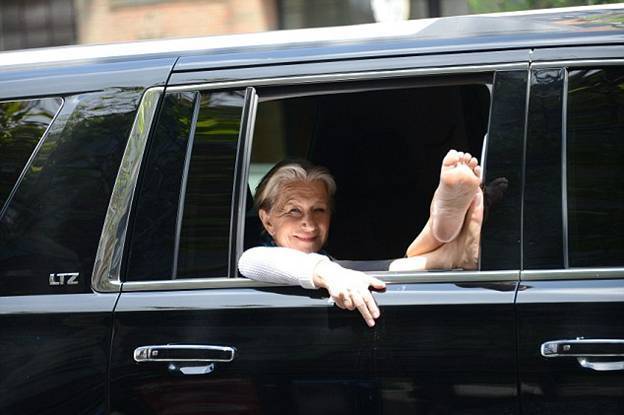 69-летняя актриса во вторник прокатилась по центру Нью-Йорка, высунув ноги из окна автомобиля. Судя по ее довольному лицу, она была счастлива и ни капли не смущалась, что ее фотографировали папарацци.