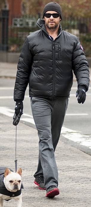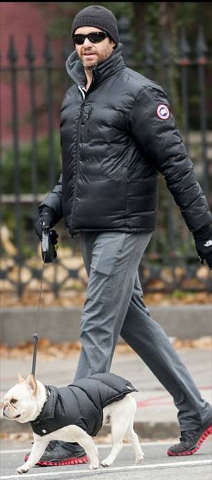 Любимец Джекмана также щеголял в дутой куртке