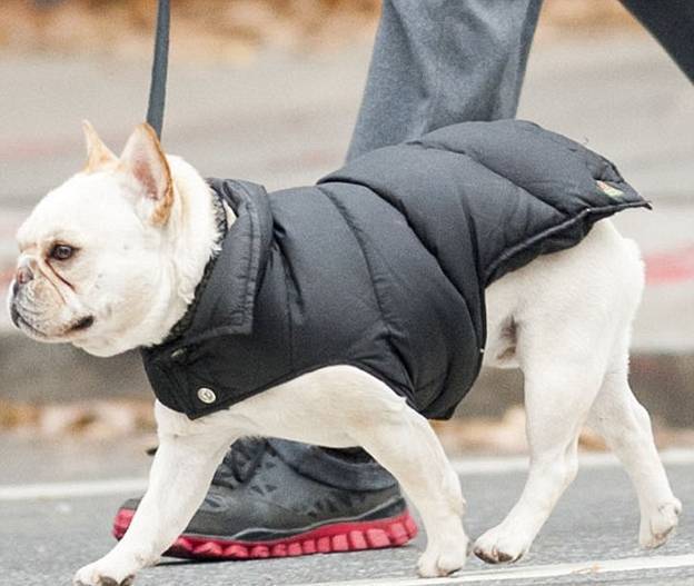 В Нью-Йорке похолодало, и его жители достали теплые вещи, при чем это касается не только людей. В понедельник в центре Манхэттена на прогулке был замечен Хью Джекман со своей семьей - женой Деборрой, дочерью Авой и французским бульдогом Дали.