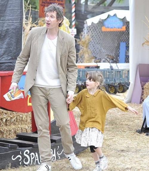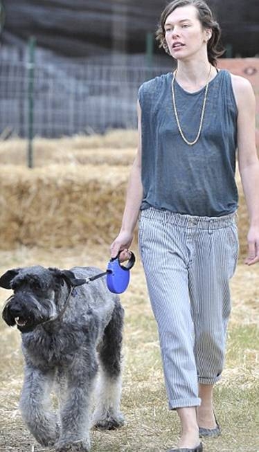 В то время, пока ее супруг, режиссер Пол Андерсен, в светлом костюмчике прогуливался вместе с их дочерью,