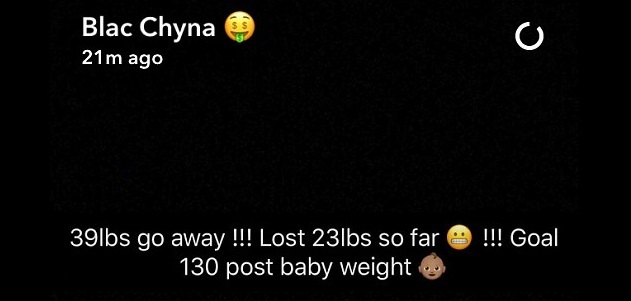 2 недели назад Блэк Чайна и Роб Кардашьян впервые стали родителями. У пары родилась дочь Дрим Рене. И вот вчера певица сообщила, что уже сбросила 17 кг.
