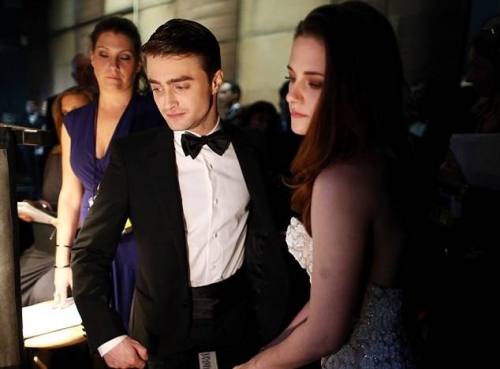 Кристен Стюарт и Дэниел Рэдклифф готовятся выйти на сцену, чтобы объявить победителя в номинации «Лучший грим»