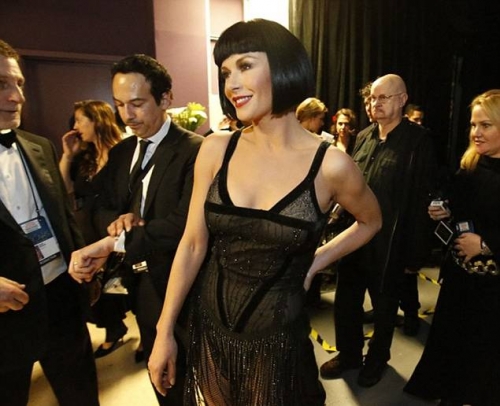 Сальма Хайек готовится выйти на сцену, чтобы представить награду от губернатора Калифорнии