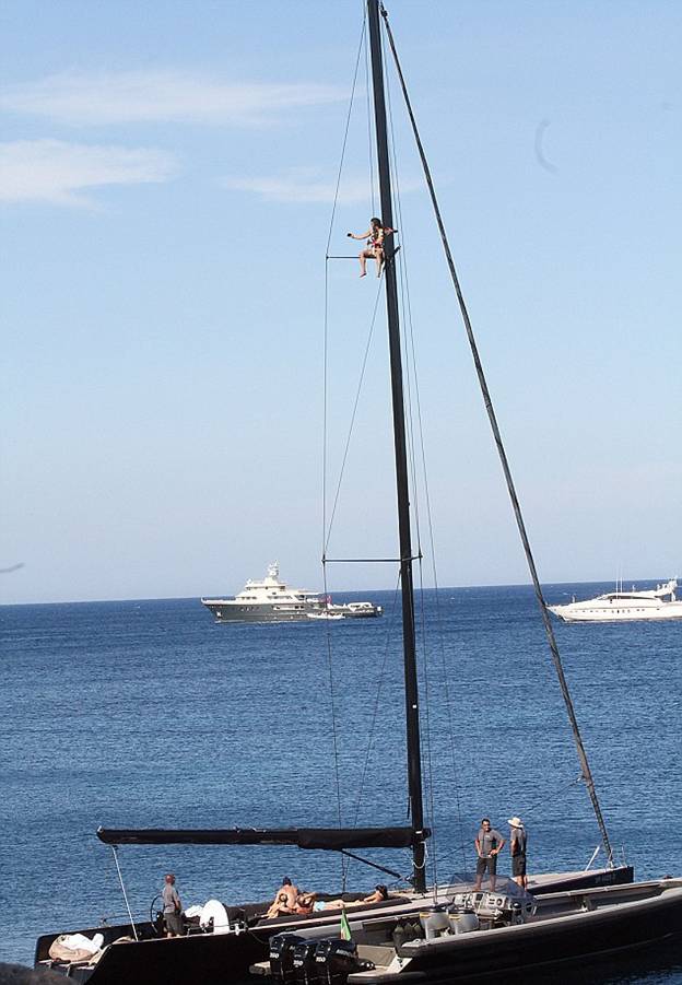 Мишель продемонстрировала ловкость и бесстаршие, когда залезла на мачту. Заку оставалось лишь смотреть на нее с палубы и делать вид, что он готов ее словить.
