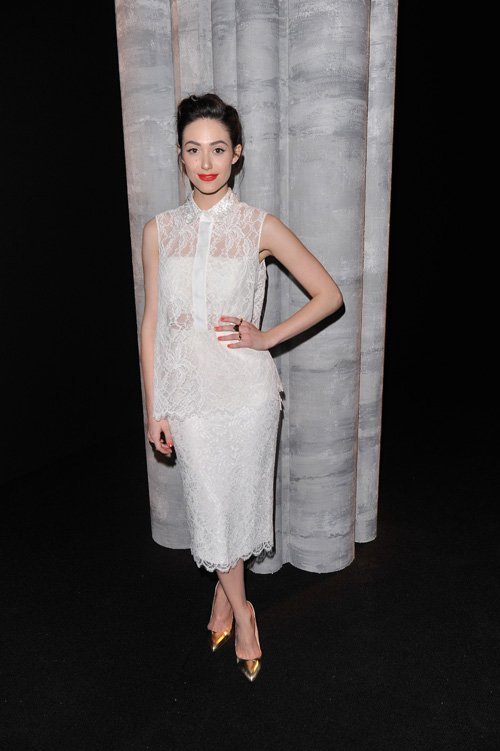Эмми Россум была одета в легкое кружевное платье, на Анне Кендрик был блестящий золотистый вечерний наряд. А Кэт Дили блистала в черно-белое платье через одно плечо.