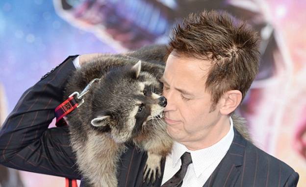 режиссер картины Джеймс Ганн с енотом на плечах.