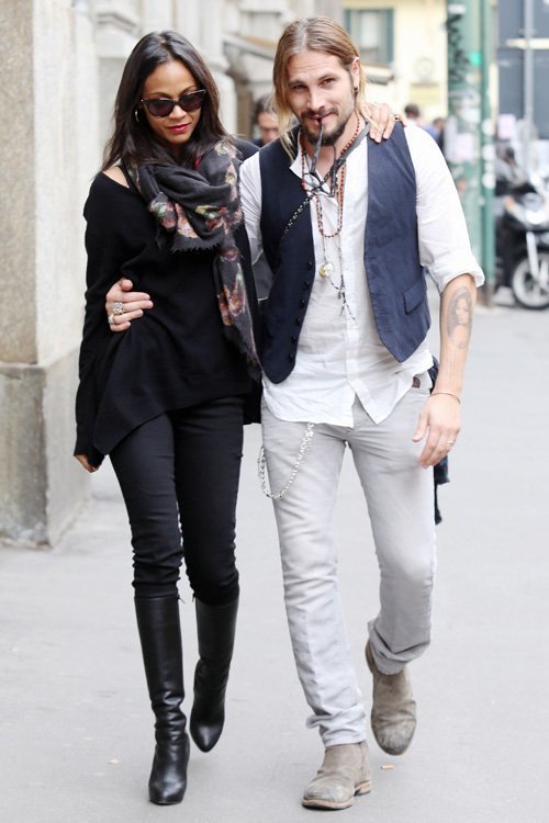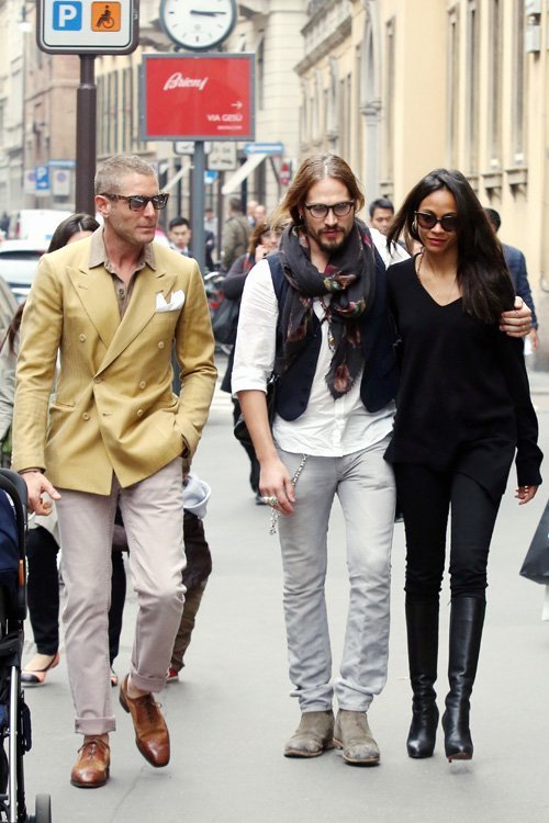 В четверг на улицах Милана была замечена Зои Салдана со своим мужем Марко Перего. В этом итальянском городе они встретились с известным предпринимателем Лало Элканн, с которым якобы обсудили совместный бизнес.