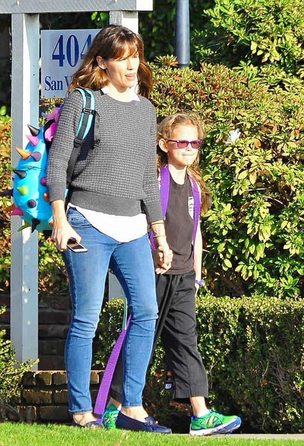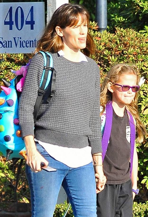 В пятницу Дженнифер Гарнер была замечена в Брентвуде, когда забирала свою старшую дочь Вайолетт из школы.