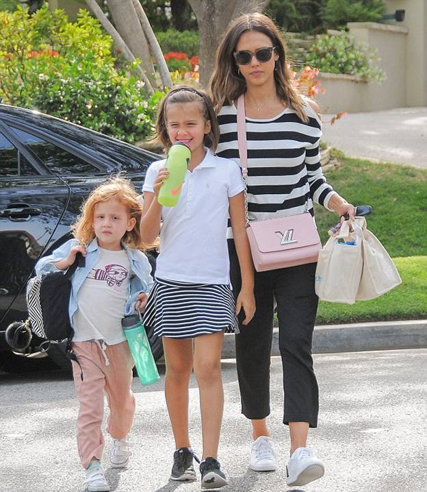 Джессика Альба со своими дочерьми, Онор и Хевен, была замечена в Лос-Анджелесе, когда забирала их со школы.