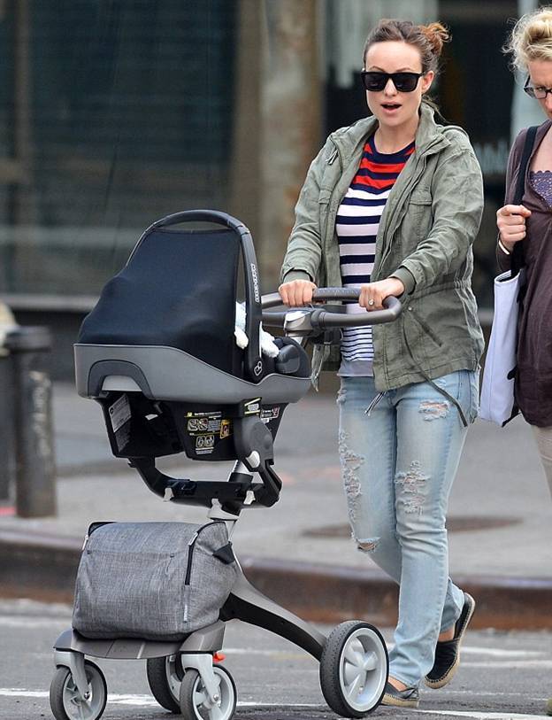 Оливия Уайлд во вторник на прогулке по Нью-Йорку со своим месячным сыном Отисом.