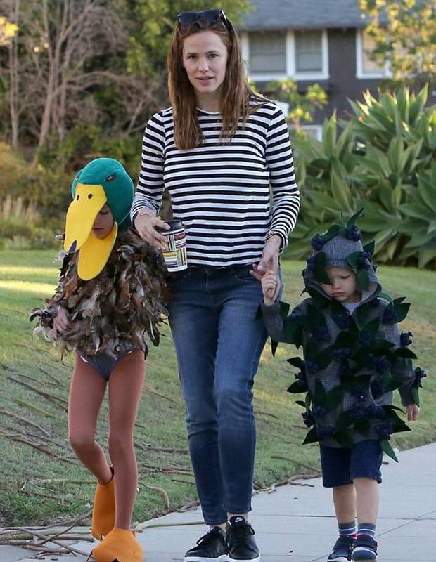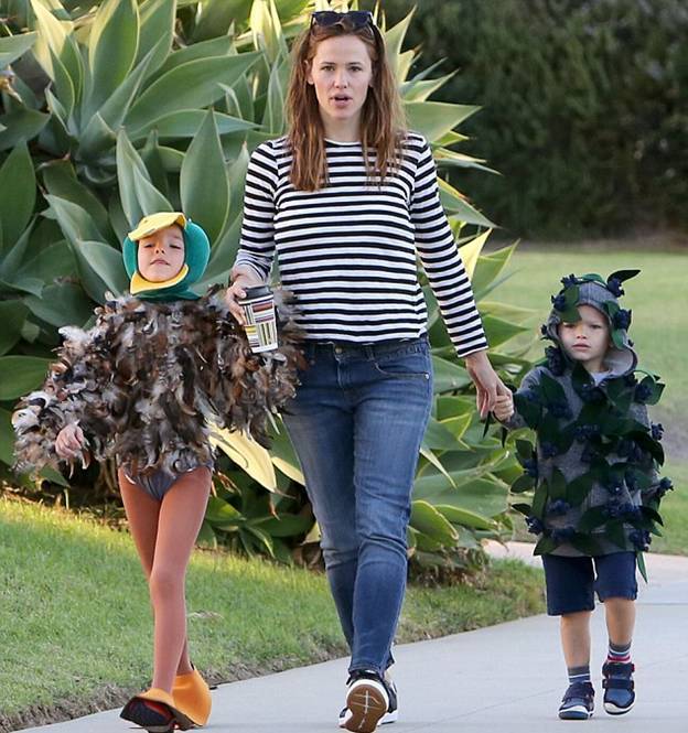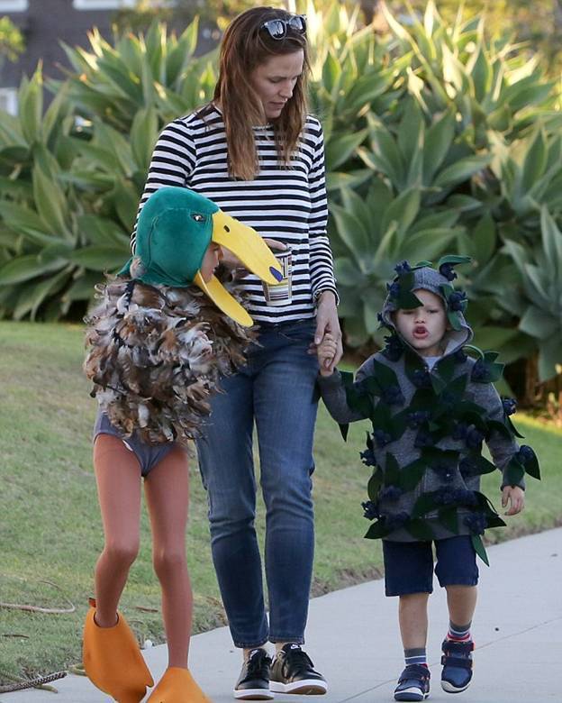 Дженннифер Гарнер со своими младшими детьми - Серафиной и Самуилом была замечена по дороге в их школу на вечеринку, посвященному Хэллоуину.
