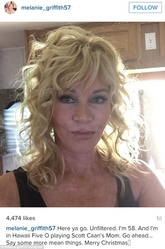 Мелани опубликовала на инстаграм свою фотографию, подписав: "Вот мой снимок. Нефильтрованное. Мне 58. Можете говорить гадости, а я иду вперед".