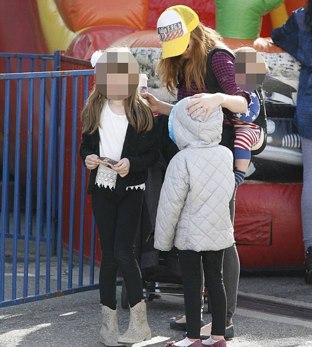40-летняя актриса с двумя дочерьми - восьмилетней Оливией, пятилетней Элулой, и годовалым сыном Монтгомери посетила местные аттракционы.