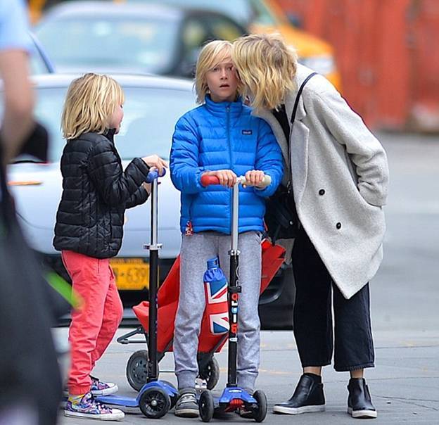 В понедельник днем она была замечена со своими сыновьями - Александром и Самуилом, на улицах Нью-Йорка. 47-летняя актриса зорко следила за ними, пока они катались на самокатах.
