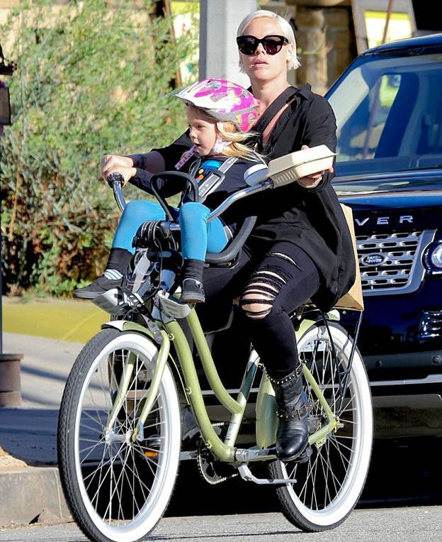 Пинк и ее дочь Уиллоу в пятницу решили пообедать в городе. Певица решила не брать машину и направилась в ресторан на велосипеде.