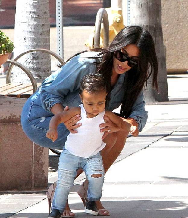 Ким Кардашян со своей годовалой дочерью Норт была замечена в родном городе своей матери Крис, Сан-Диего. Она с дочерью гуляла по улицам города, при этом, по всей видимости, 13-месячная Норт делала одни из своих первых шагов. Это первая фотография малышки, где она самостоятельно ходит.