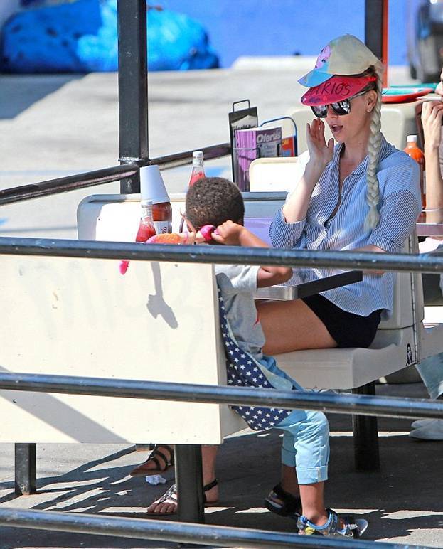 Шарлиз Терон со своим сыном Джексоном посетила в понедельник лос-анджелесский ресторан мексиканской кухни